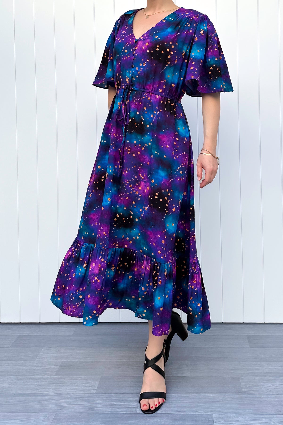 Peony Midi Dress - Universe Shimmer - Pockets